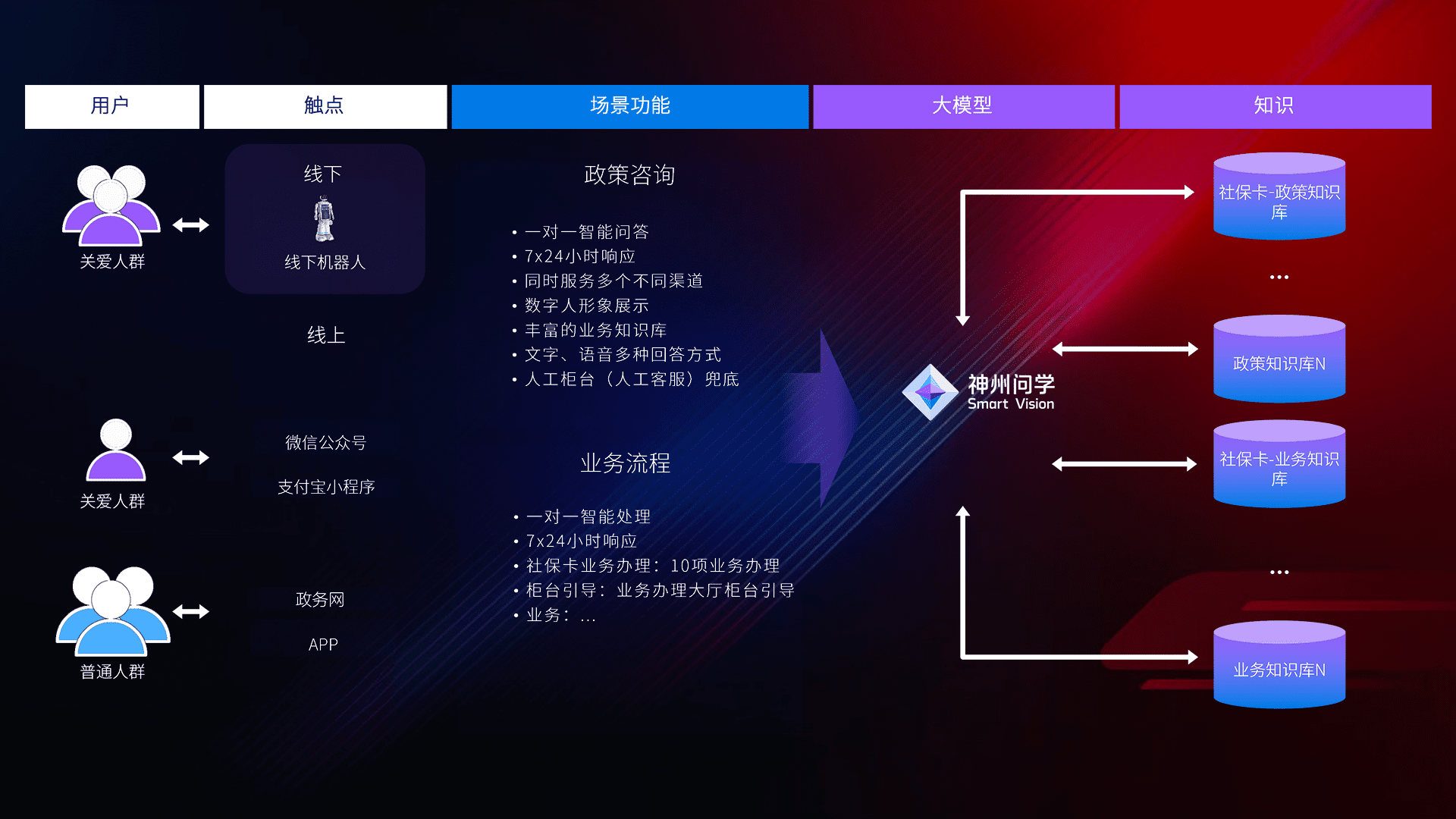 • 线上线下全覆盖:线上提供微信公众号、、、、支付宝小程序、、、、政务网、、app多种渠道,,与线下机器人形成完整服务体系。。。
